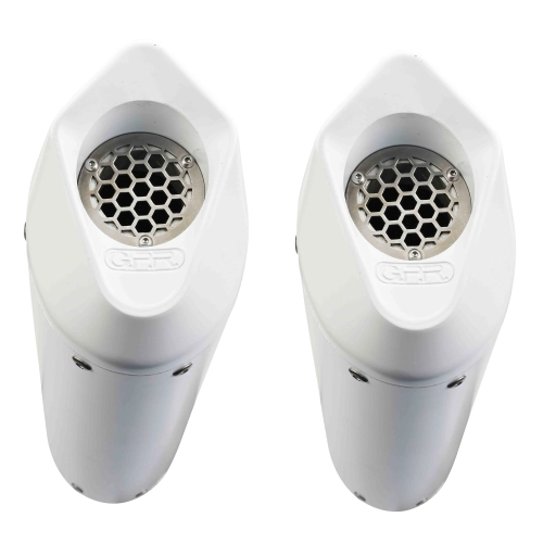 La serie de silenciadores ALBUS de GPR tiene cuerpo de aluminio y mecanizado CNC Avional. gorras. El escape tiene un tratamiento cerámico, que puede soportar altas temperaturas. Tiene forma elíptica con unas medidas de 90 x 120 MM.SILENCIADOR ALBUS Este kit incluye el tubo lnik específico o medio colector con soportes y accesorios específicos adecuados. Esto permite la instalación sin modificaciones estructurales. Este es un producto GPR original, desarrollado después de la experiencia de GPR en el Campeonato Mundial. Ofrece un diseño innovador, rendimiento mejorado, ahorro de peso y un sonido con mucho cuerpo.Peso: 1,87 Kg