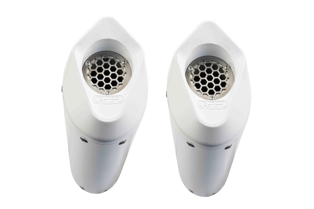 La serie de silenciadores ALBUS de GPR tiene cuerpo de aluminio y mecanizado CNC Avional. gorras. El escape tiene un tratamiento cerámico, que puede soportar altas temperaturas. Tiene forma elíptica con unas medidas de 90 x 120 MM.SILENCIADOR ALBUS Este kit incluye el tubo lnik específico o medio colector con soportes y accesorios específicos adecuados. Esto permite la instalación sin modificaciones estructurales. Este es un producto GPR original, desarrollado después de la experiencia de GPR en el Campeonato Mundial. Ofrece un diseño innovador, rendimiento mejorado, ahorro de peso y un sonido con mucho cuerpo.Peso: 1,87 Kg