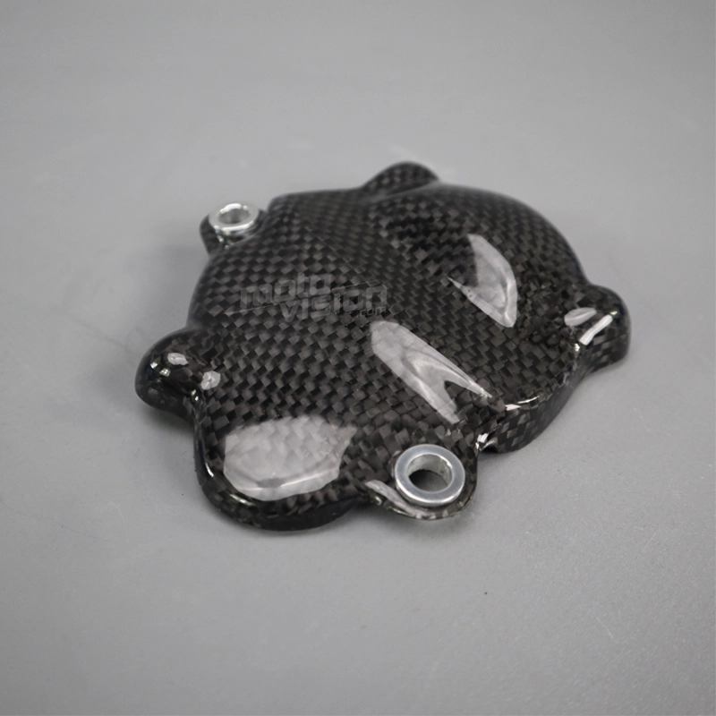 Piezas en carbono real con una capa exterior de carbono y cuatro capas internas en Kevlar, acabado de barniz.