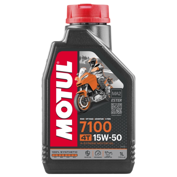 Utilice el aceite Motul 7100 15W50 1L para sus motos de carretera, trail, off-road, enduro, trial... equipadas con motores de 4 tiempos con cajas de cambio integradas o no, y embrague húmedo o seco, motores que cumplan las normas anticontaminación Euro 2, 3, 4 o 5, equipados con sistemas de postratamiento de gases de escape: catalizadores, inyección de aire de escape...