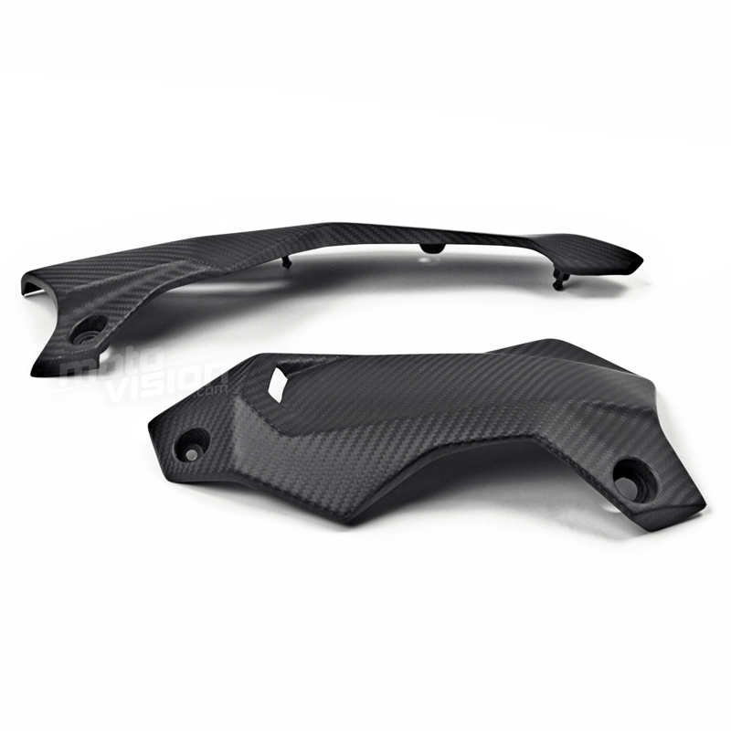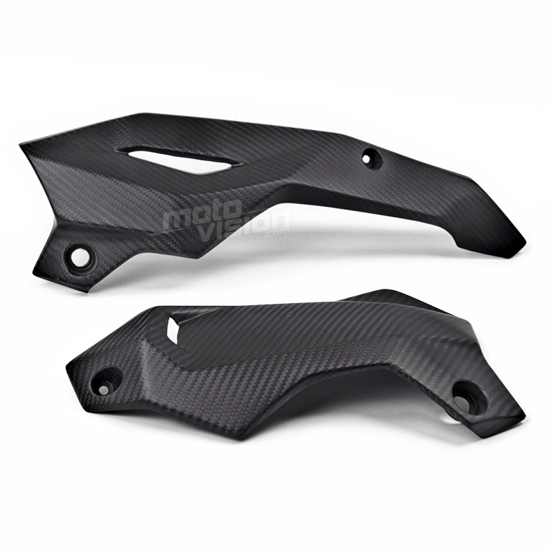 Protectores carenado delantero carbono Kawasaki Z900 2018-, se entrega sin tornillos ni otras fijaciones. Los agujeros ya están perforados en los carenados de carbono de las motos. Las piezas están disponibles en barniz brillante o mate.