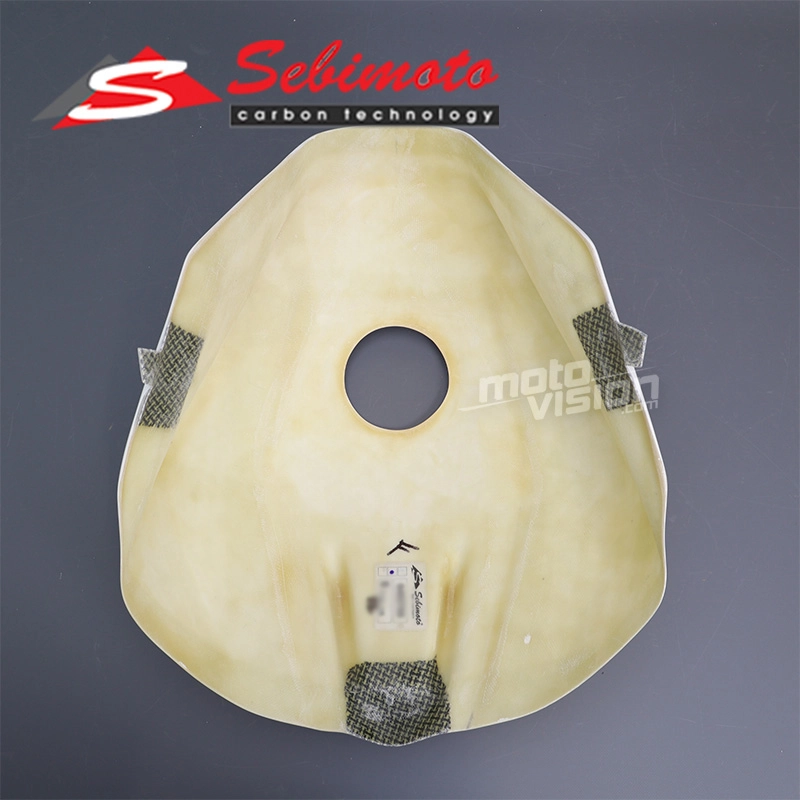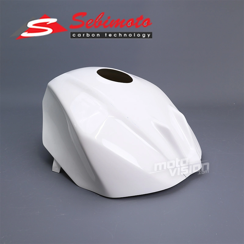 Copri serbatoio Sebimoto Aprilia RSV4 2013-2020 en fibra de vidrio trenzada con refuerzos de kevlar. El cubredepósito para motos se utiliza para ocultar un depósito dañado o para evitar posibles gravedades, pero al ser bastante fino no protegerá su depósito en caso de una fuerte caída. El producto se monta fácilmente en su moto gracias a la señalización de los lugares de perforación y a un buen acabado del carenado.