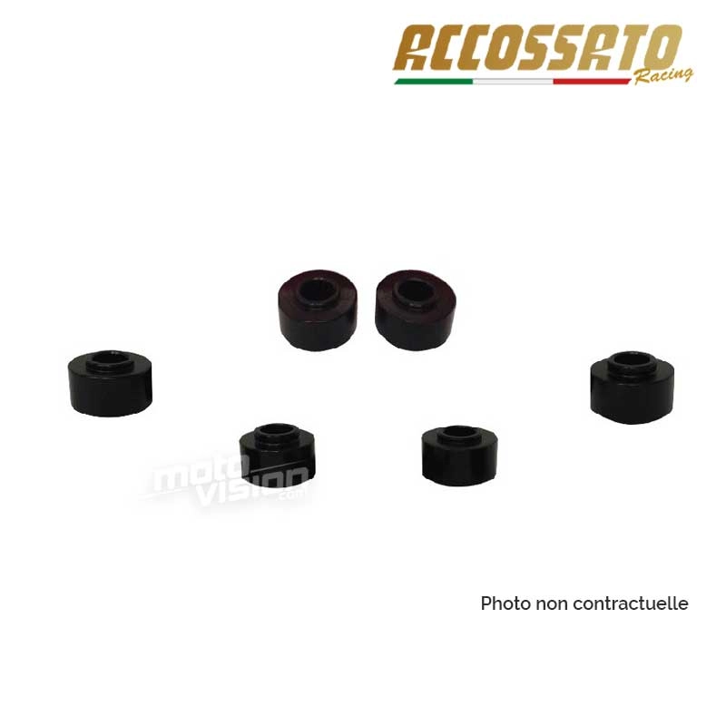 Sustituya sus espaciadores de pinza originales por este kit de espaciadores de pinza de Accossato. Incluye 4 espaciadores + 4 tornillos. Permite el montaje de las pinzas en la horquilla original de su moto. Se proponen varias alturas para adaptarse lo mejor posible a su modelo de moto. :