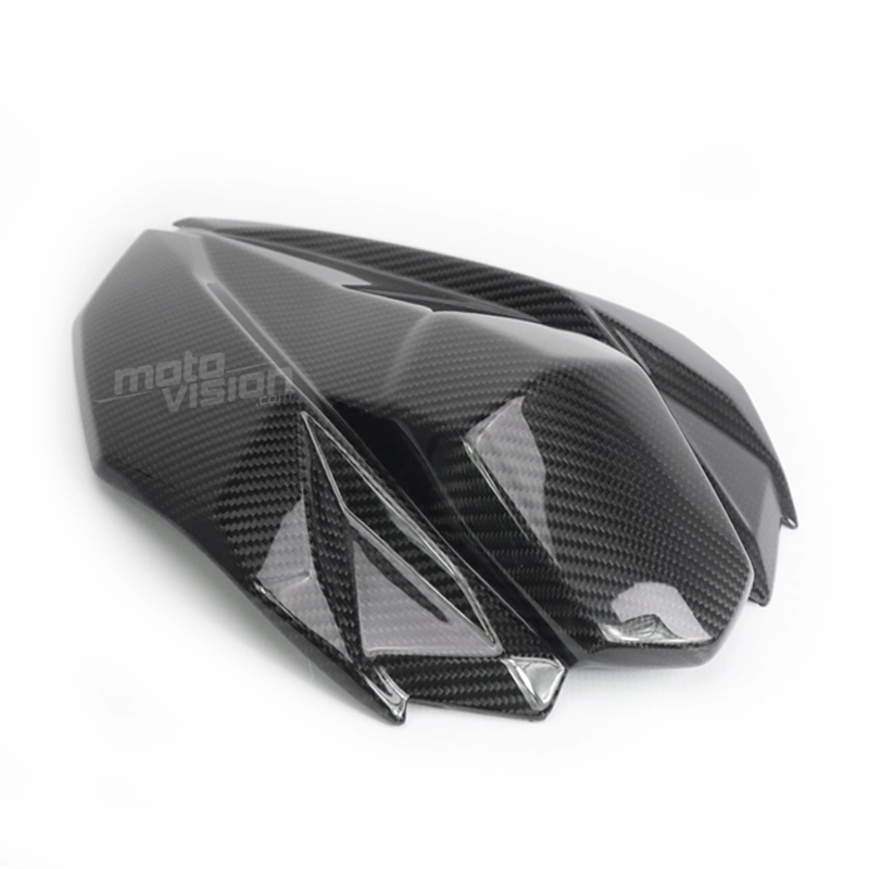 Cubre asiento en carbono Kawasaki Z800 2013-2016, se entrega sin tornillos ni otras fijaciones. Los agujeros ya están perforados en los carenados de carbono de las motos. Las piezas están disponibles en barniz brillante o mate.