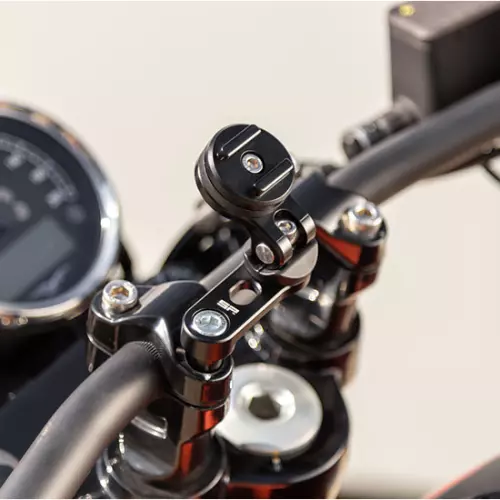 El soporte del manillar de la moto para el teléfono SP Connect se atornilla en lugar de uno de los tornillos del soporte original del manillar (M8). Se suministran 3 tornillos M8 (40 / 45 / 50 mm). Para una instalación completa, utiliza las fundas para teléfonos SP Connect.