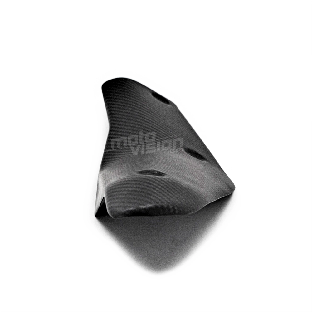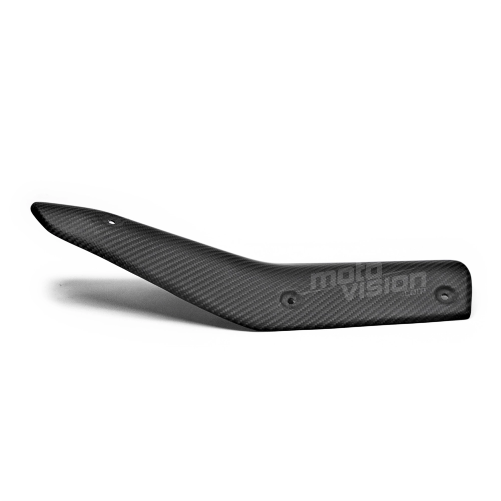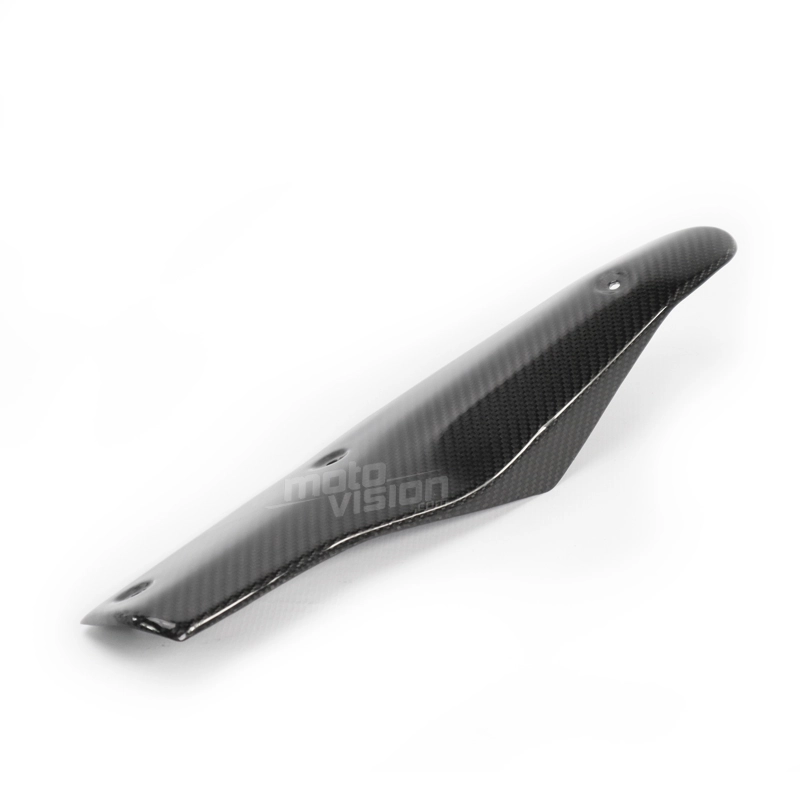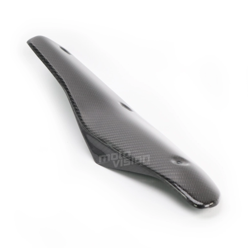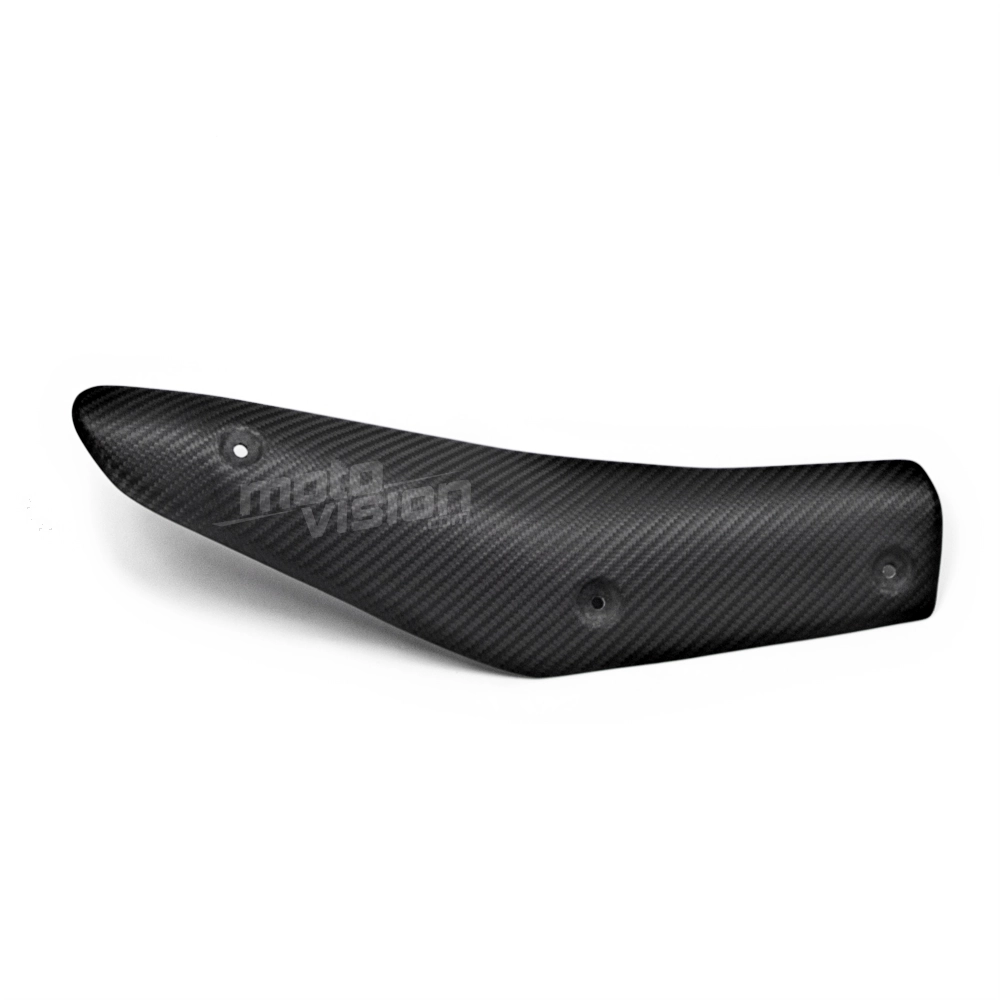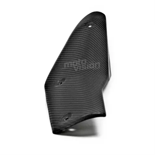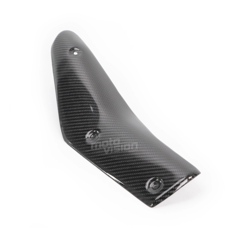 Protector colector escape en carbono KTM Superduke 1290 2017, se entrega sin tornillos ni otras fijaciones. Los agujeros ya están perforados en los carenados de carbono de las motos. Las piezas están disponibles en barniz brillante o mate.