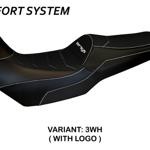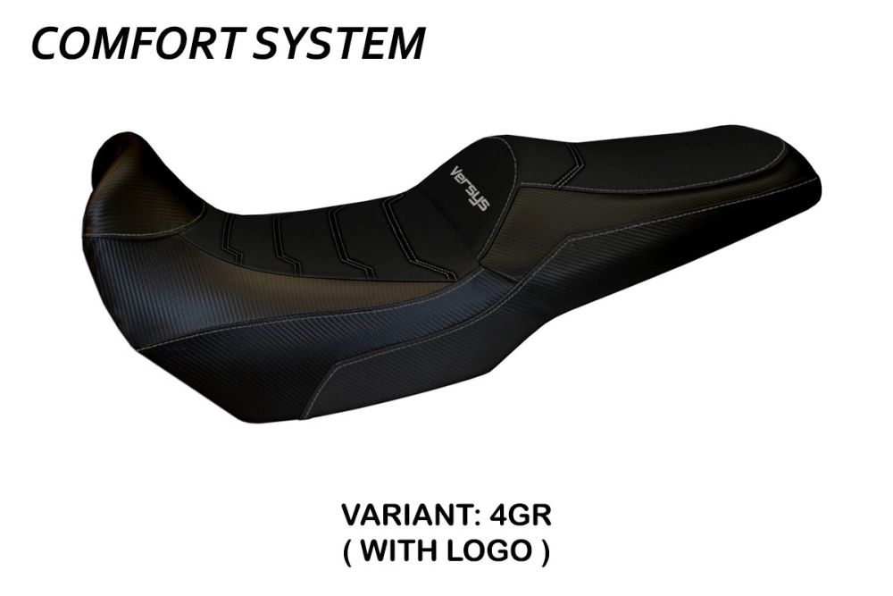 Funda de asiento compatible con Kawasaki Versys 1000 (19-21) modelo Malay Total Black sistema de confort