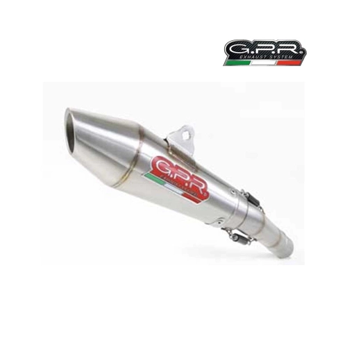 La serie Vintacone de GPR está hecha a mano -Acero inoxidable 304 cepillado con acabado en color bronce, cuerpo en forma de cono y tapa de salida con parrilla racing. Este kit incluye el tubo lnik o medio colector específico con soportes y accesorios específicos. Esto permite la instalación sin modificaciones estructurales. Este es un producto GPR original, desarrollado después de la experiencia de GPR en el Campeonato Mundial. Ofrece un diseño innovador, rendimiento mejorado, ahorro de peso y un sonido con mucho cuerpo.Peso: 1,8 Kg