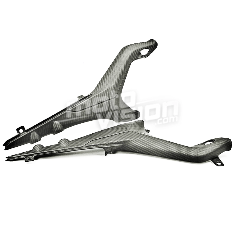 Subpanel de asiento de carbono DUCATI Streetfighter V4/V4S 2020-2022 que se monta directamente en los puntos de fijación originales de su moto para sustituir el carenado original. Las piezas de carbono se entregan sin tornillos ni pernos.