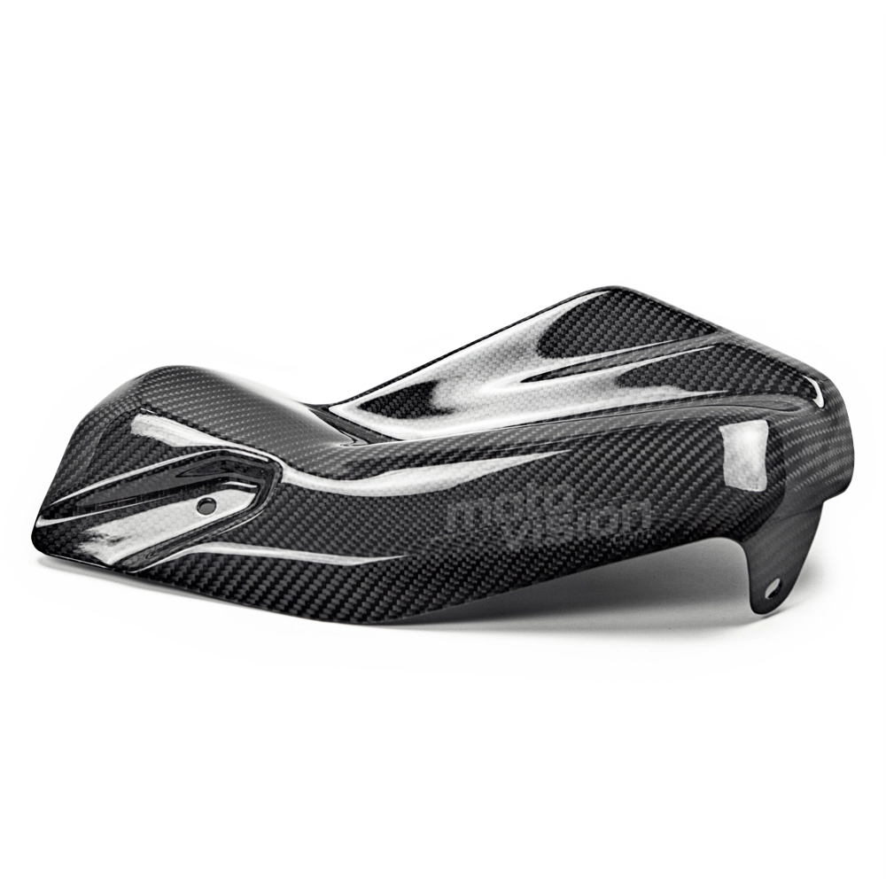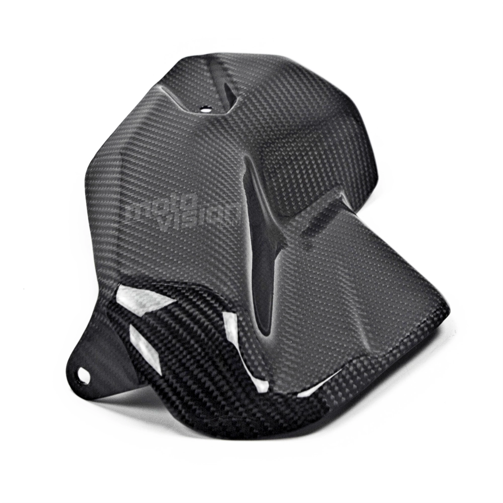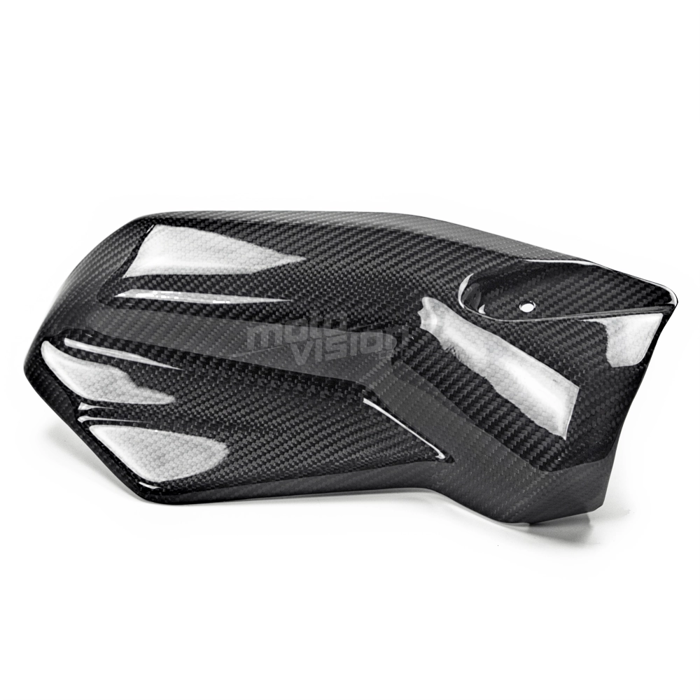 Guarda de escape de carbono DUCATI Multistrada V4/V4S/Sport 2020-2022, se entrega sin tornillos ni otras fijaciones. Los agujeros ya están perforados en los carenados de carbono de las motos. Las piezas están disponibles en barniz brillante o mate.