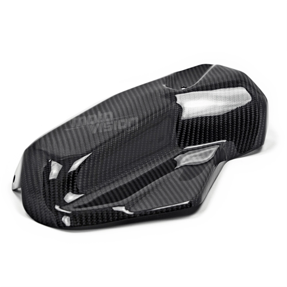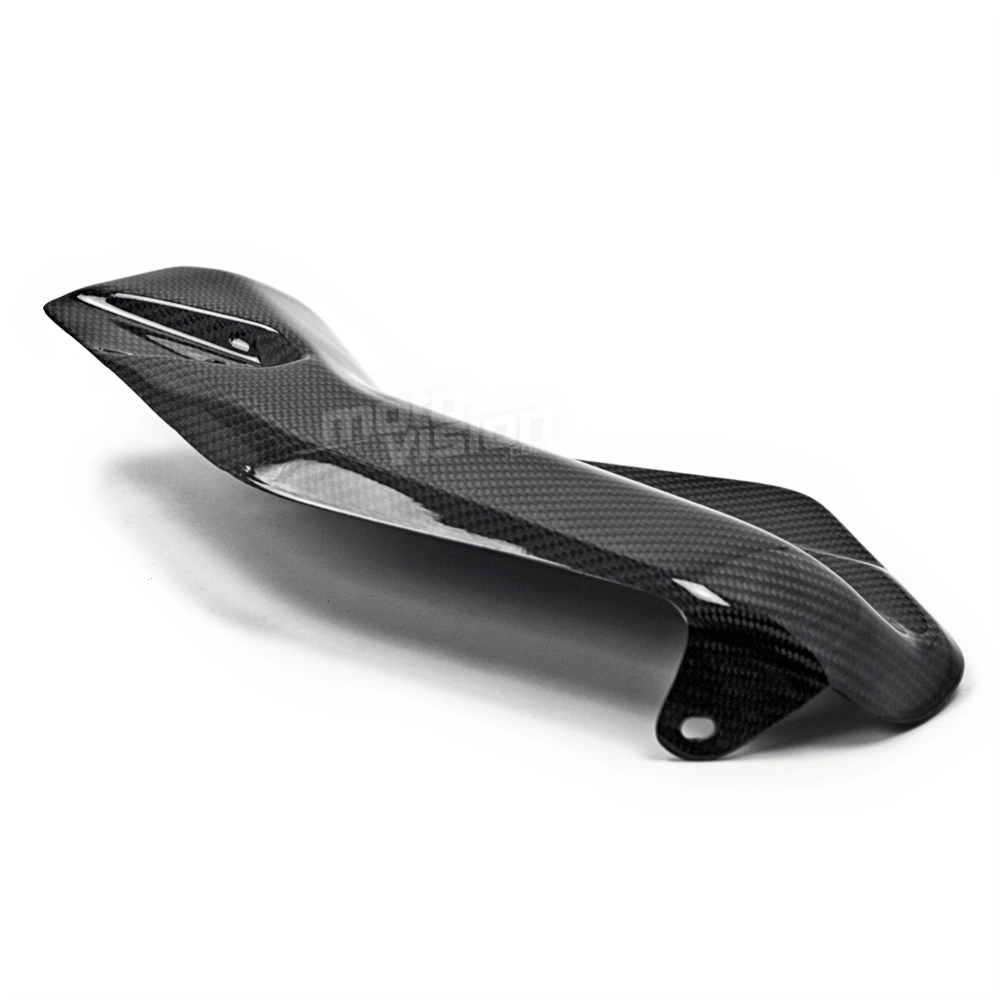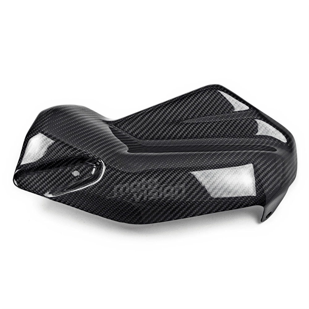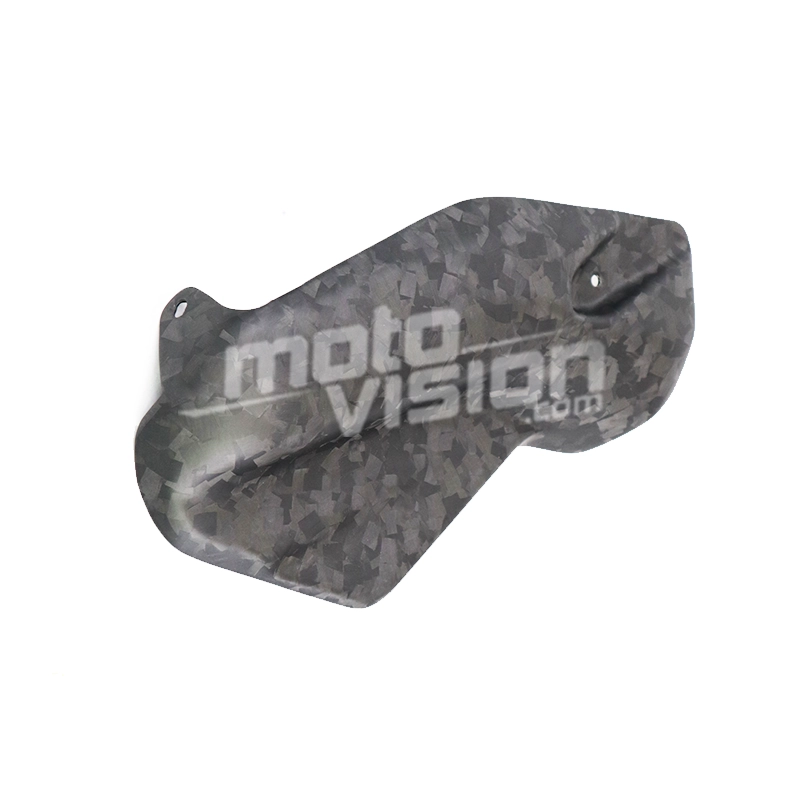 Guarda de escape de carbono DUCATI Multistrada V4/V4S/Sport 2020-2022, se entrega sin tornillos ni otras fijaciones. Los agujeros ya están perforados en los carenados de carbono de las motos. Las piezas están disponibles en barniz brillante o mate.