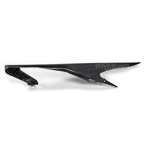 Protector de cadena carbono Triumph Street Triple 675 2013, se entrega sin tornillos ni otras fijaciones. Los agujeros ya están perforados en los carenados de carbono de las motos. Las piezas están disponibles en barniz brillante o mate.