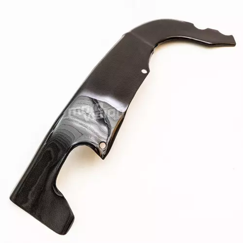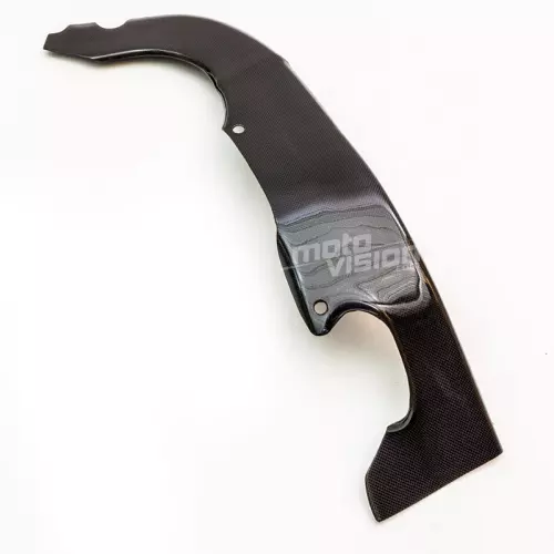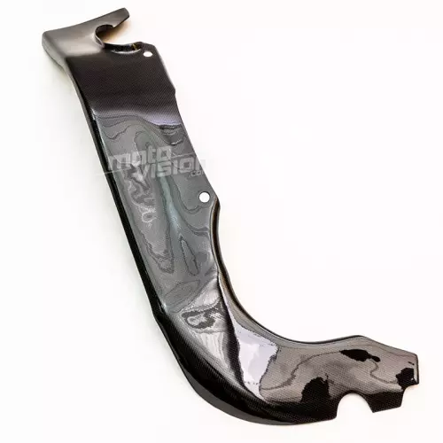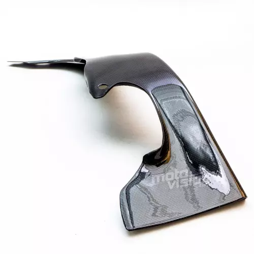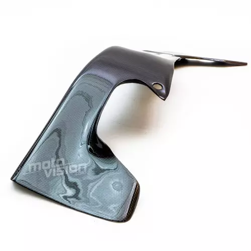 Protección para moto con una capa exterior de auténtica fibra de carbono twill brillante (solo disponible en este acabado). Se entrega sin tornillería ni otros elementos de fijación.