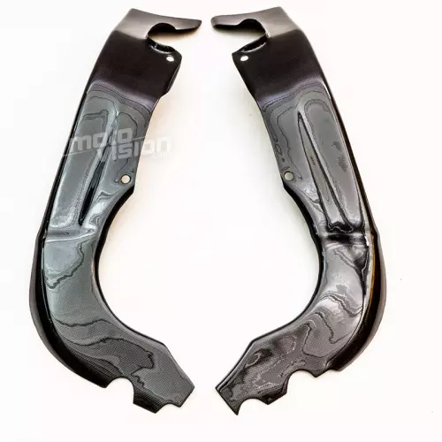 Par de protectores de chasis de Carbono Yamaha R1 2004-2006 , compuestos por dos capas interiores con una capa exterior de auténtica fibra de carbono twill brillante.