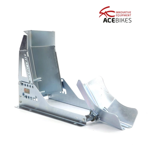 El bloqueo de rueda fijo SteadyStand Multi de Acebikes está diseñado para hacer un uso inteligente de la gravedad. El bloqueo de rueda fijo SteadyStand se puede montar fácilmente en el suelo de un remolque o furgoneta.