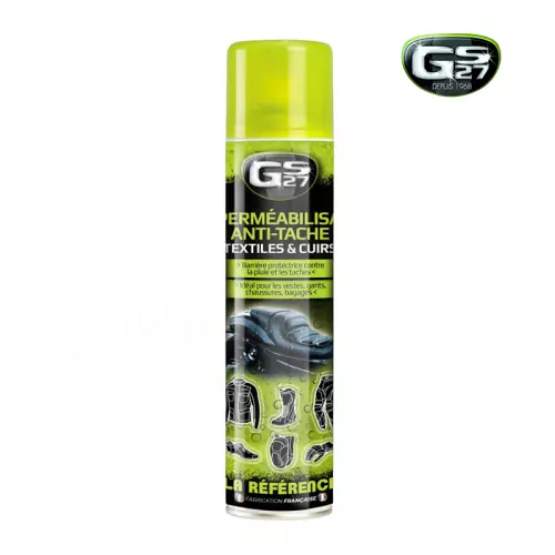 GS27® Quitamanchas para Moto impermeabiliza y protege contra las manchas en todos los cueros y tejidos. GS27® Quitamanchas para Moto se puede utilizar en todos los tejidos, cueros y ante: chaquetas, pantalones, botas, sillas de montar, guantes, mochilas, zapatos.