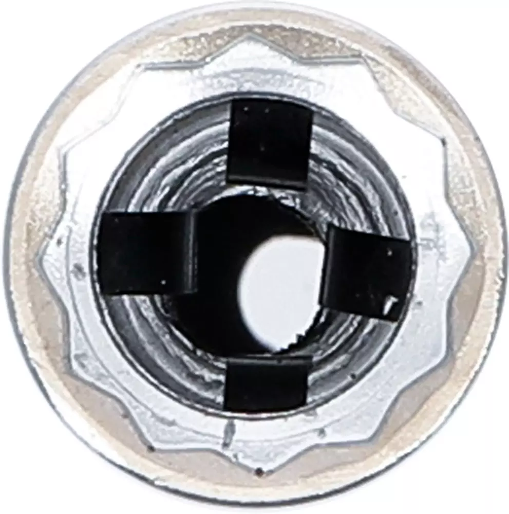 Der Steckschlüssel besteht aus Chrom-Vanadium-Stahl mit einer verchromten Oberflächenbehandlung.