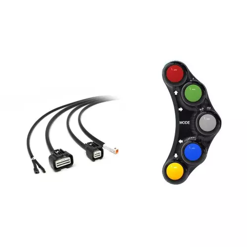 Esta versión racing incluye únicamente las funciones esenciales para el uso en competición. En motos deportivas o preparadas para circuito, los mandos también pueden integrar funciones racing como launch control, pit limiter, gestión del shifter/blipper u otros parámetros electrónicos.