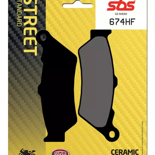 Pastillas de freno SBS 674HF de la gama Street Organique, ideales para sustituir sus pastillas originales y proporcionar una frenada estable, un alto nivel de confort, una larga vida útil y protección de los discos en condiciones húmedas y secas para motos y scooters.