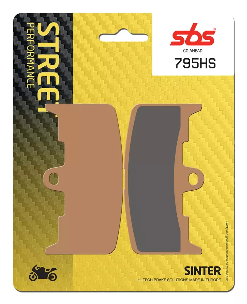 Pastillas de freno SBS 795 (HS) para motos con pastillas delanteras originales sinterizadas. Parte de la gama Street Sinter - Metal sinterizado delantero.