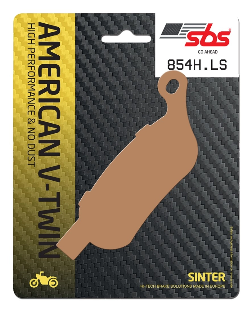 Pastillas de freno SBS 854H-LS de la gama Street Sinter - Metal Sinterizado Trasero. Las pastillas no dañan el disco, su rendimiento se mantiene estable tanto en seco como en mojado y no requieren rodaje térmico. Combinadas con el forro HS del freno delantero, proporcionan la potencia de frenado que necesitas y esperas.