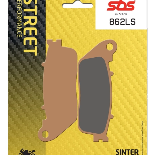 Pastillas de freno SBS 862LS de la gama Street Sinter - Metal Sinterizado Trasero. Las pastillas no dañan el disco, su rendimiento se mantiene estable tanto en seco como en mojado y no requieren rodaje térmico. Combinadas con el forro HS del freno delantero, proporcionan la potencia de frenado que necesitas y esperas.