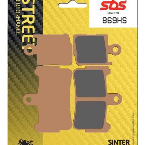 Pastillas de freno SBS 869HS para motos con pastillas delanteras originales sinterizadas. Parte de la gama Street Sinter - Metal sinterizado delantero.
