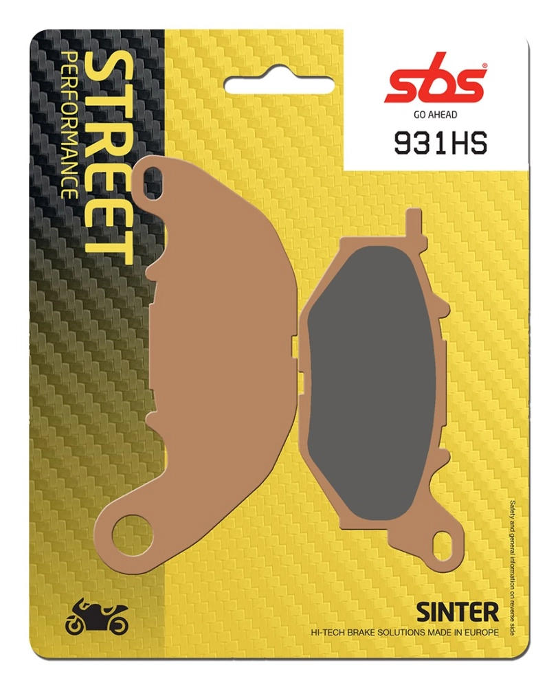 Pastillas de freno SBS 931HS para motos con pastillas delanteras originales sinterizadas. Parte de la gama Street Sinter - Metal sinterizado delantero.