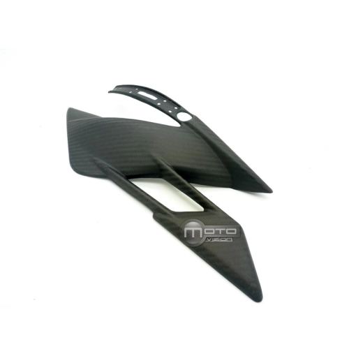 la partie en carbone ou vient ce loger l attache métallique pour attacher est mal ajustée les pas de visse sont en aluminium sur le bras oscillant et comme cela tombe pas juste j'ai un pas de vis hs maintenant la fixation du dessous tombe aussi pas très bien et la forme du cache est un peut différente du coup on a énormenemy de mal a visser la vis du bas sans casser la fixation dommage car très belle pièce
