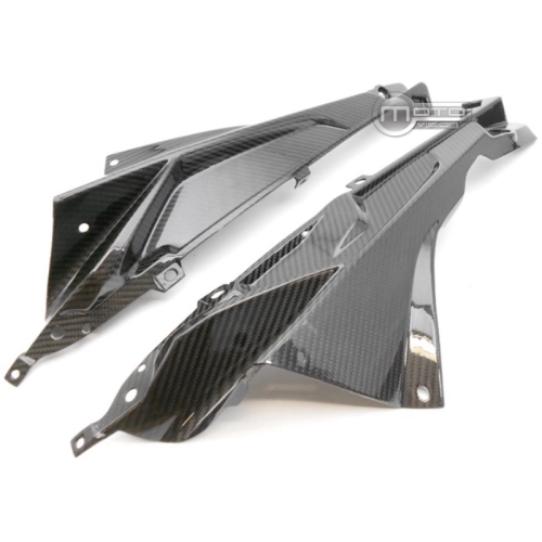 Carenados laterales carbono BMW S1000RR que se monta directamente en los puntos de fijación originales de su moto para sustituir el carenado original. Las piezas de carbono se entregan sin tornillos ni pernos.