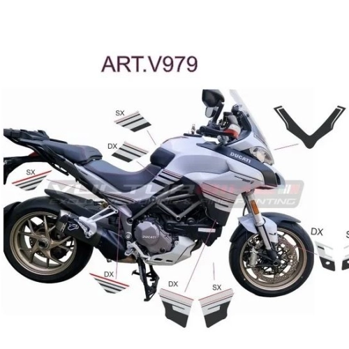 Kit de adhesivos plateados-rojos-negros metalizados para Ducati Multistrada 1260/1260S