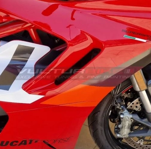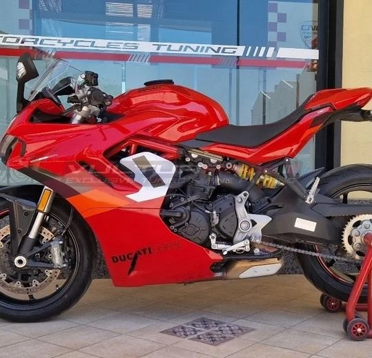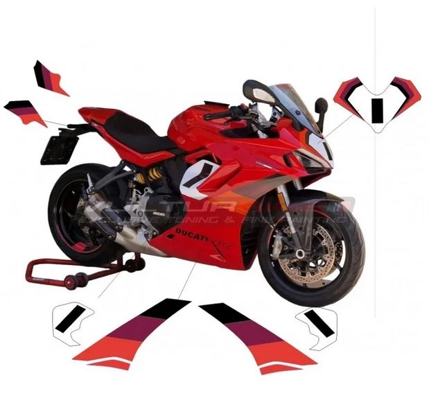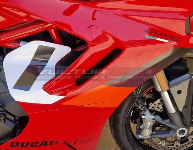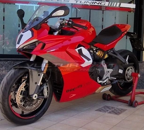 Personaliza tu moto con los Kit completo de adhesivos - Ducati Supersport 950. Los adhesivos decorativos de Vulturbike están cortados en vinilo tintado estabilizado a los rayos UV.