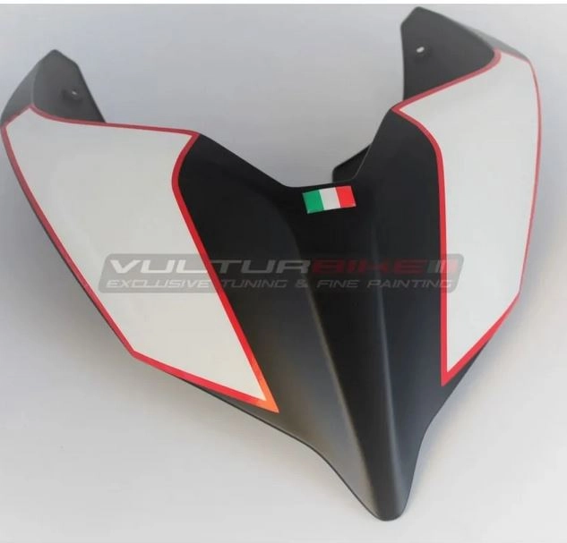 Personaliza tu moto con los Kit de pegatinas blancas con bordes rojos para el colín - Ducati Panigale / Streetfighter. Los adhesivos decorativos de Vulturbike están cortados en vinilo tintado estabilizado a los rayos UV.