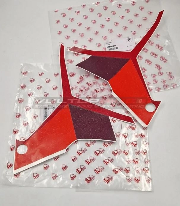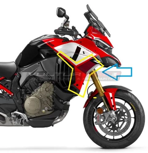 Personaliza tu moto con los Calcas originales Ducati Multistrada V4 Pikes Peak. Los adhesivos decorativos de Vulturbike están cortados en vinilo tintado estabilizado a los rayos UV.