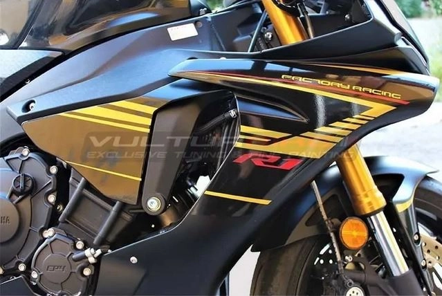 Personaliza tu moto con los Kit de adhesivos Factory Racing versión amarilla - Yamaha R1 2015-2018. Los adhesivos decorativos de Vulturbike están cortados en vinilo tintado estabilizado a los rayos UV.