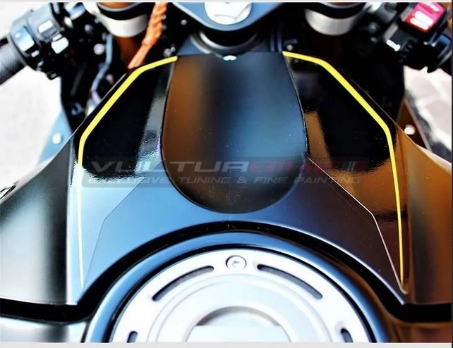 Los gráficos Vutlurbike están diseñados y "dibujados" directamente sobre el carenado de la moto, de modo que las líneas respetan las formas y curvas del modelo en cuestión. Fácil de aplicar gracias a su película de transferencia y a un recorte adaptado al modelo de tu moto. El encolado se realiza en unos minutos.