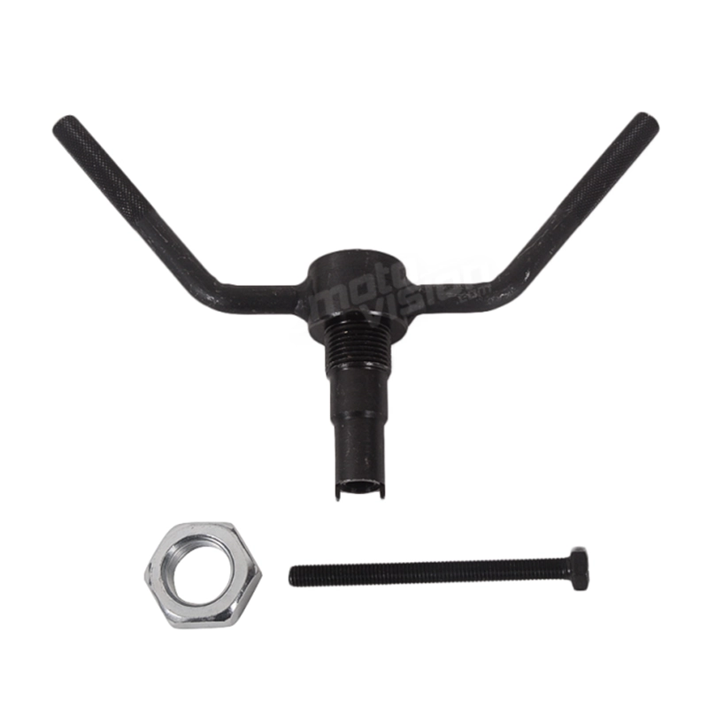 Das Ducati Kurbelwellendrehwerkzeug ist eine Spezialausrüstung, die zum Drehen des Motors bei gleichzeitiger Einstellung des Ventilspiels entwickelt wurde und so zur Leistung der Ducati-Motorradmotoren beiträgt.