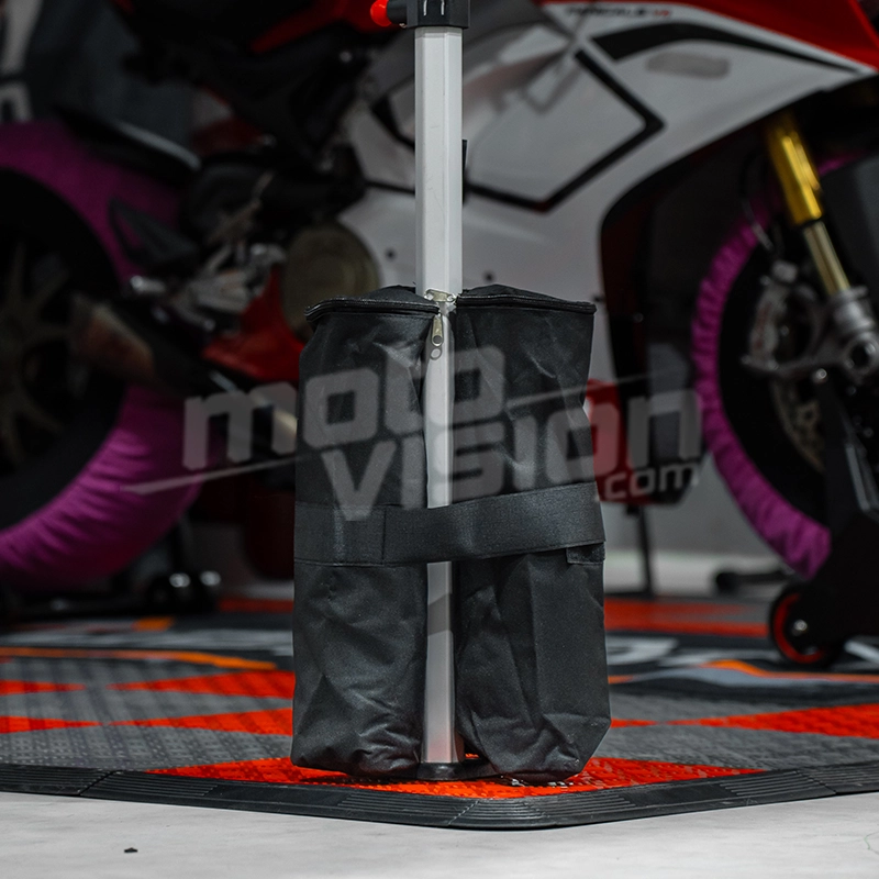 Los sacos de lastre Moto Vision son fáciles de llenar, transportar e instalar, gracias a su versatilidad para adaptarse a diferentes formas de barniz. Puede utilizar arena u otros materiales como grava. Evitan eficazmente que su estructura vuelque o se vuele en condiciones de viento, creando un entorno seguro para su equipo.