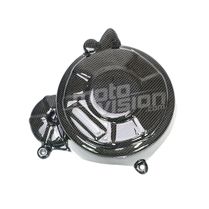 Pieza original de carbono/kevlar, compuesta por una capa exterior de fibra de carbono y 4 capas interiores de kevlar, con un acabado exterior brillante.