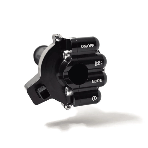 Los conmutadores derechos (3 botones) están disponibles para su uso en competición o en carretera. Aprilia, BMW, Ducati, Honda, Suzuki, Kawasaki, Suzuki, Yamaha y Mv Agusta también están disponibles para ciertos modelos Ducati legales como Monster, Hypermotard, Multistrada.