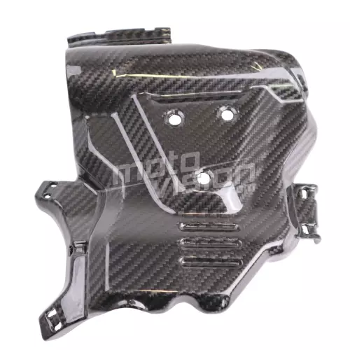 Cubierta motor en carbono Ducati Hypermotard 698 2024- que se monta directamente en los puntos de fijación originales de su moto para sustituir el carenado original. Las piezas de carbono se entregan sin tornillos ni pernos.