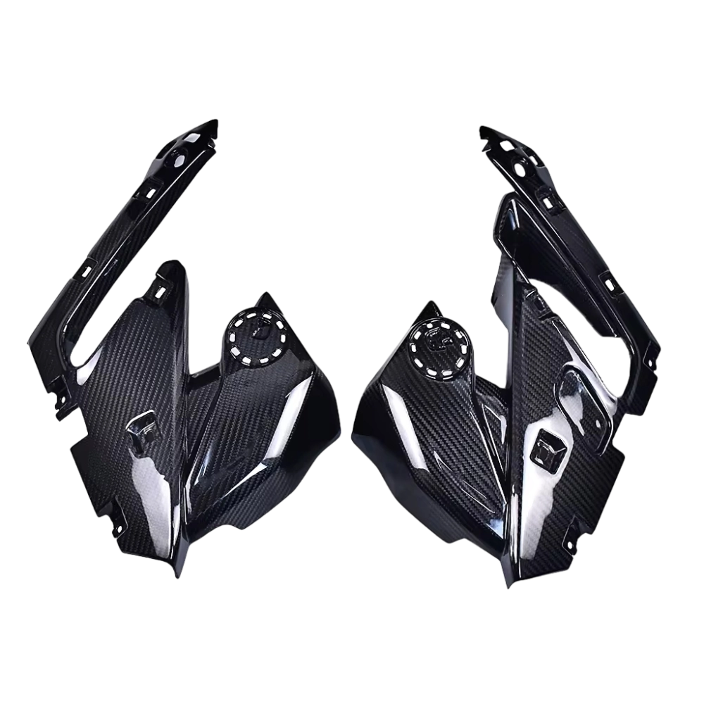 Protectores interior carenados BMW S1000R 2021- M1000R 2023- , se entrega sin tornillos ni otras fijaciones. Los agujeros ya están perforados en los carenados de carbono de las motos. Las piezas están disponibles en barniz brillante o mate.