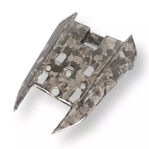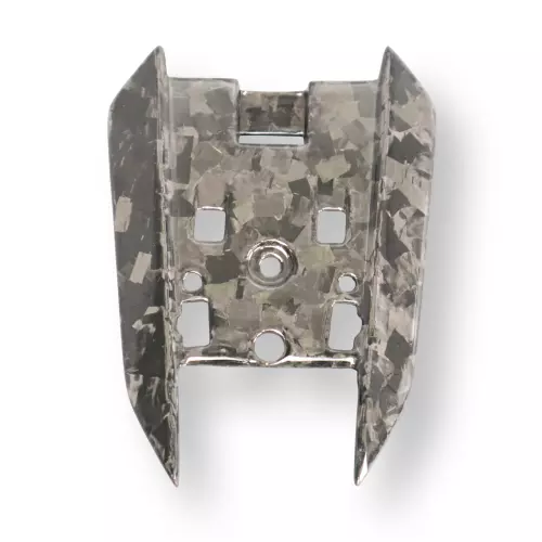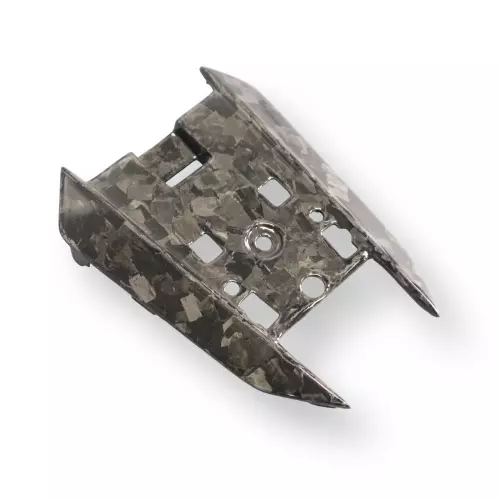 Fácilmente reconocible por su trama muy fina y tupida, que le confiere una gran resistencia a los impactos. A continuación, la película se coloca en un molde con resina de polímero termoendurecible. Al secarse, el carbono adquiere su forma definitiva, produciendo un efecto estético muy apreciado por sus líneas oblicuas.