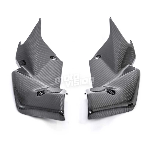 Protectores laterales de chasis en carbono Suzuki GSR 750, se entrega sin tornillos ni otras fijaciones. Los agujeros ya están perforados en los carenados de carbono de las motos. Las piezas están disponibles en barniz brillante o mate.