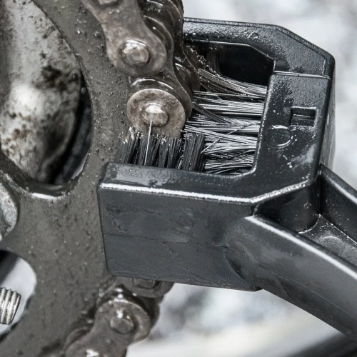 Resistentes cerdas de nylon para eliminar rápidamente la suciedad incluso de las cadenas más sucias.