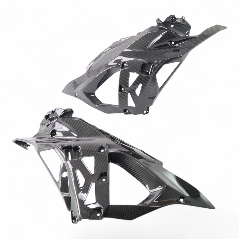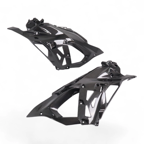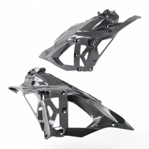 Paneles laterales de carbono Kawasaki ZX6R 636 2024-, se entrega sin tornillos ni otras fijaciones. Los agujeros ya están perforados en los carenados de carbono de las motos. Las piezas están disponibles en barniz brillante o mate.