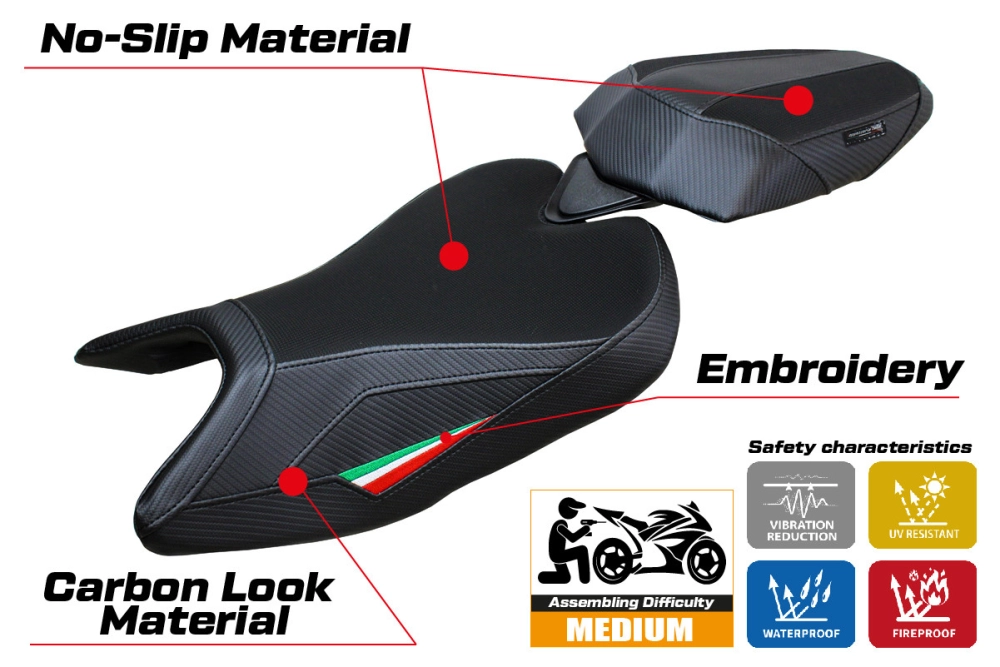 Dale a tu moto un aspecto más personal con las soluciones de tapicería de la marca italiana Tappezzeria Italia. Su experiencia y su gran sentido del detalle confieren a las creaciones una estética única, sin sacrificar la comodidad del piloto. Cada cubierta se basa en el diseño original para un ajuste perfecto y una instalación rápida y fácil en su moto.