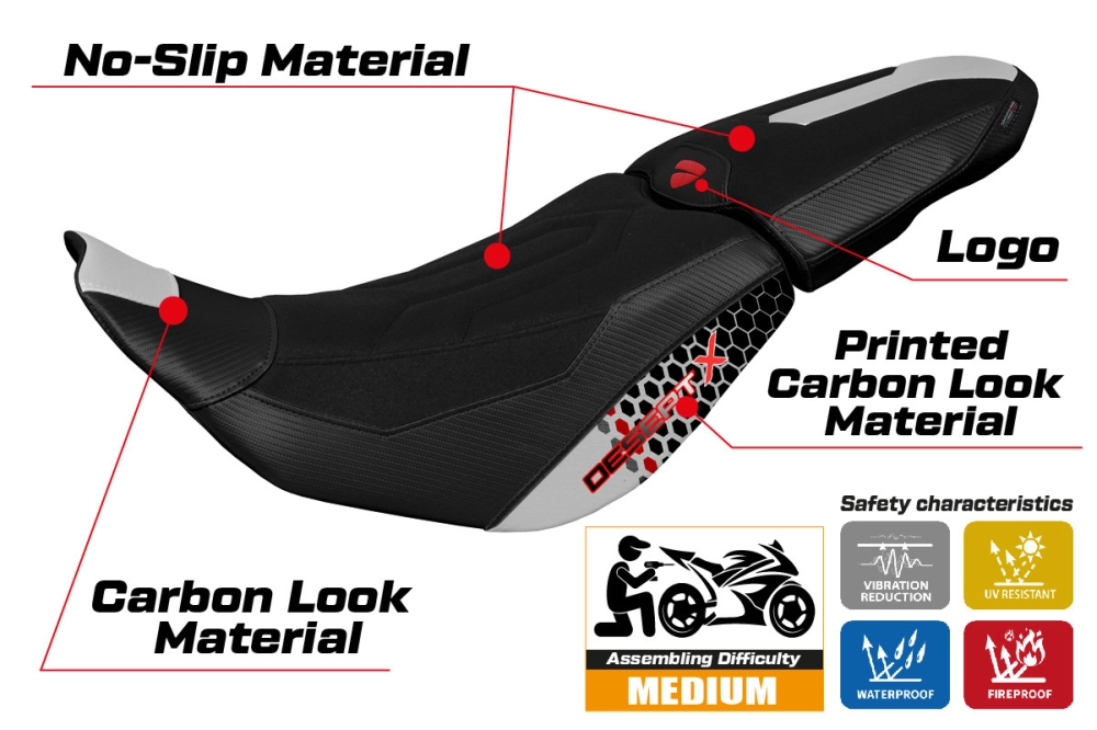 Funda de asiento Tappezzeria DUCATI DESERT-X (22-24) SELLE STANDARD modele Thar special color ultragrip