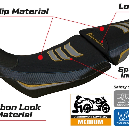 - Ultragrip: Este tipo de revestimiento está especialmente indicado para motos deportivas en las que se requiere un mayor agarre del asiento. El material es extremadamente poroso y recibe el apodo de "asfalto" por su rugosidad similar a la de las carreteras.