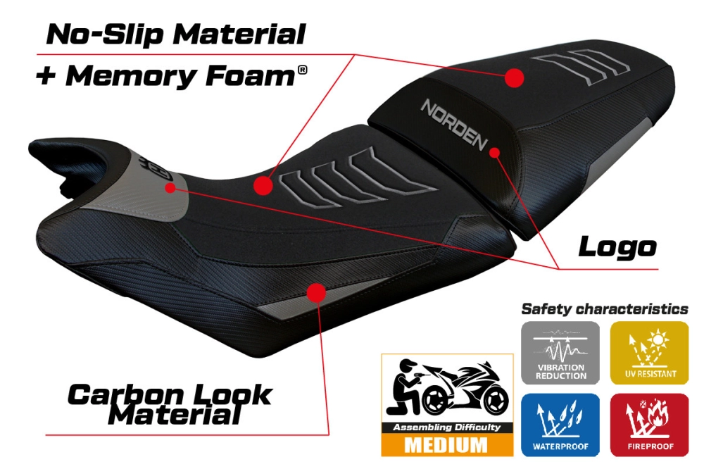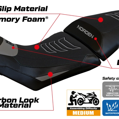 La Funda de asiento Tappezzeria HUSQVARNA NORDEN 901 (22-24) modele Ultragrip Heating Comfort System te permite cambiar fácilmente el aspecto del asiento original de tu moto. Tiene las características técnicas esenciales para una funda de asiento de moto de calidad: impermeable y resistente al sol, costuras dobles reforzadas y alta resistencia a los productos químicos.